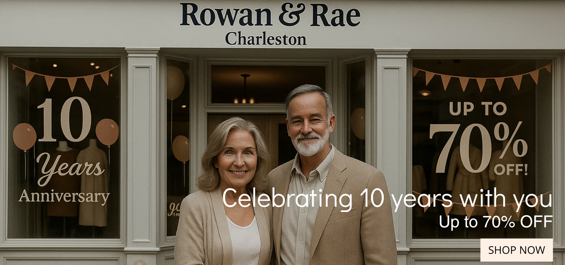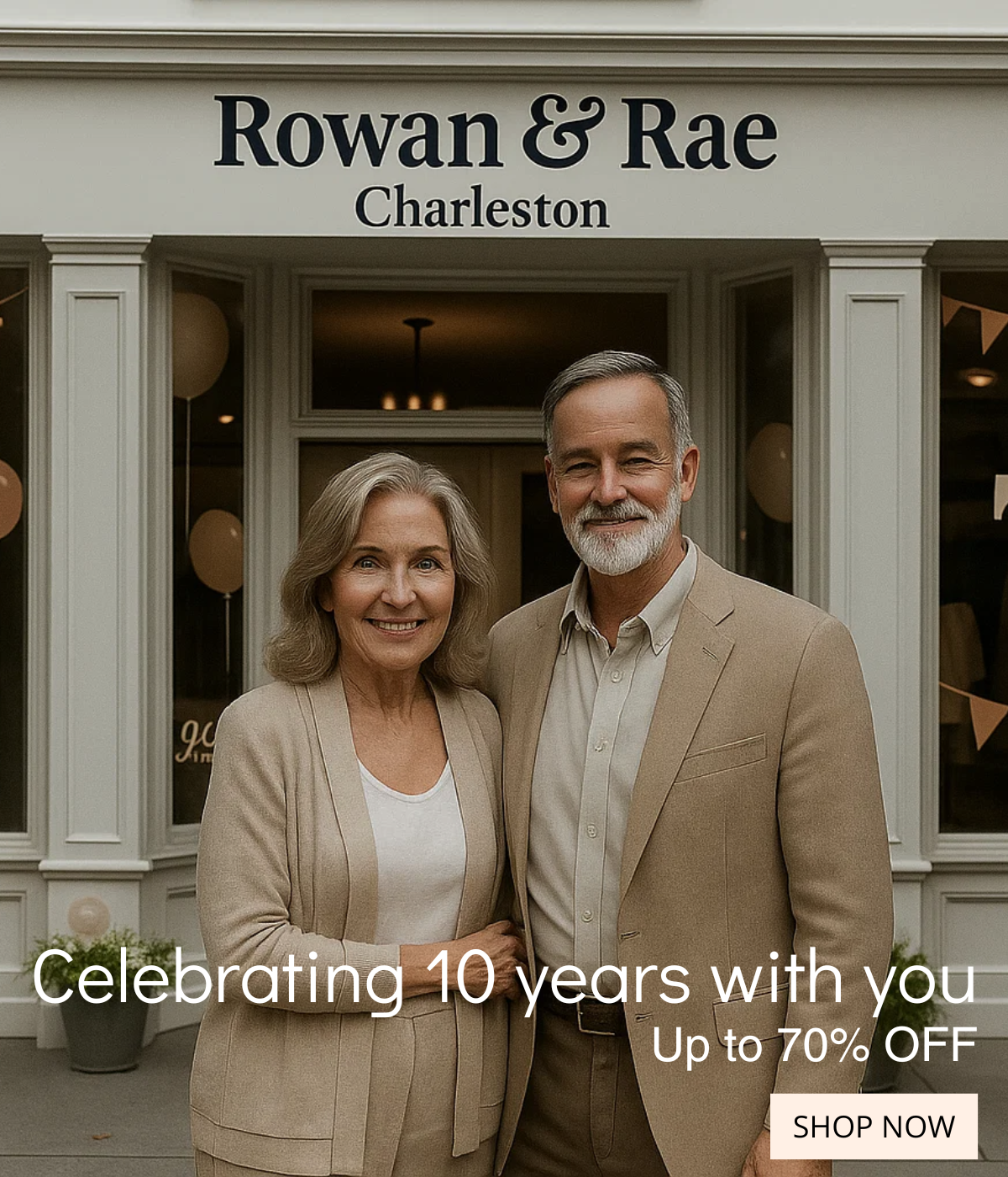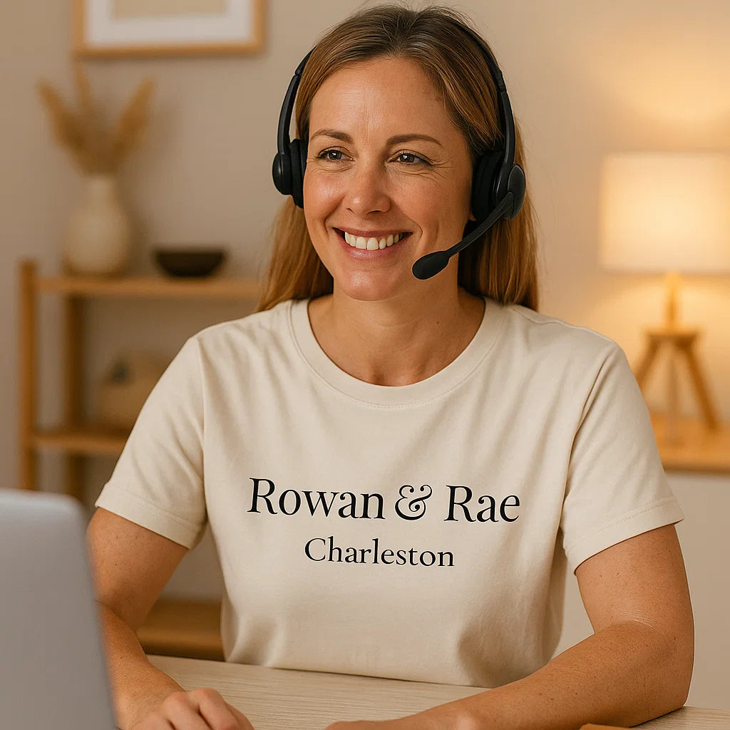Hi there! We’re Rowan and Rae — a couple who turned our shared love for timeless fashion, comfort, and classic design into something special. What began as a small dream in Charleston grew into a boutique made for women who want to feel effortlessly confident and beautifully themselves.